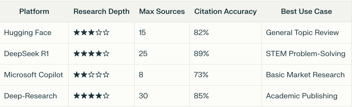 למשתמשים אקדמיים בעלי תקציב מוגבל, DeepSeek R1 ו-Jina AI DeepResearch מספקים את הקרבה הרבה ביותר ל-ChatGPT Pro, במיוחד בתחומים טכניים. עיתונאים ומשתמשים כלליים נהנים מהממשק הנוח של Hugging Face למרות דיוק נמוך יותר. מפתחים הזקוקים להתאמה אישית יעדיפו את הארכיטקטורה המודולרית של Deep-Research.