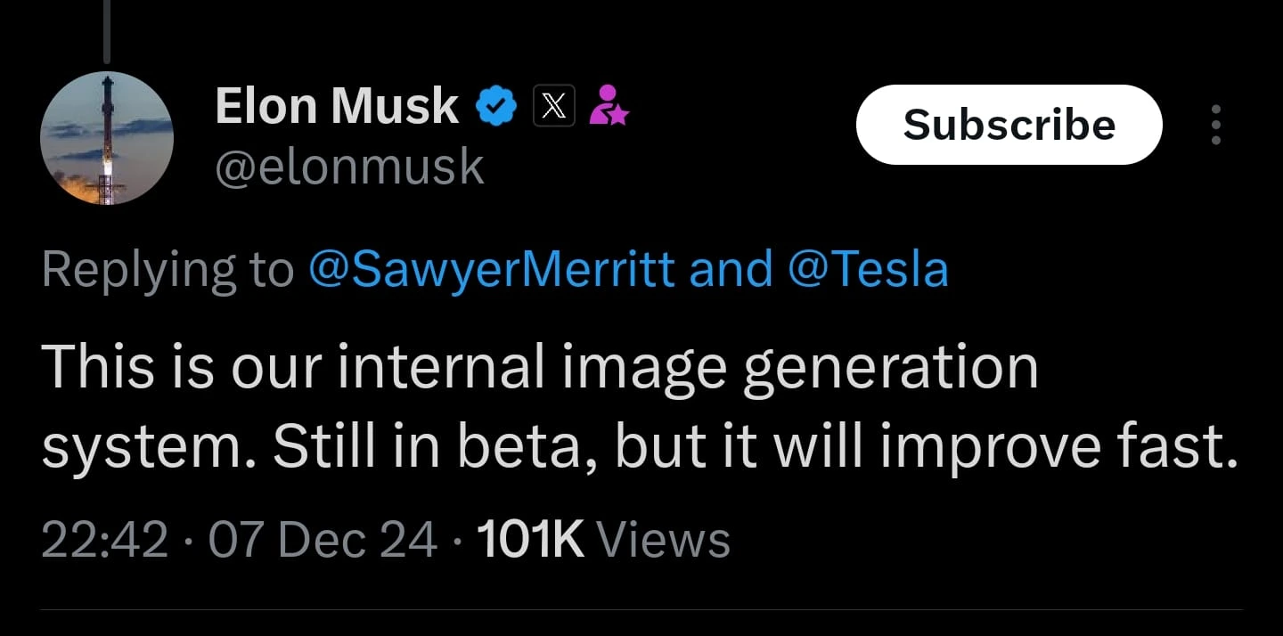 **עדכון 8-12-2024 – המודל הוסר מהאתר – מאסק כותב שזה מודל פנימי שלהם שעדיין יש לו מה להשתפר**
