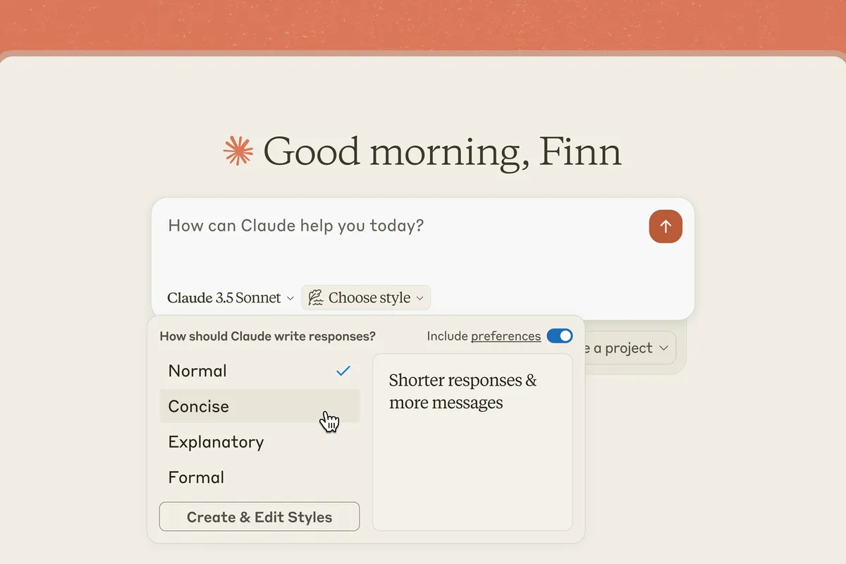 האפשרות להתאים את סגנון התשובות מעניקה למשתמשים דרך אוטומטית ליצירת תגובות ברמה גבוהה שמתאימות לטון ולאווירה הנדרשים. לדוגמה, ניתן לבקש מקלוד תשובות מפורטות ללמידת חומר חדש או תשובות קצרות כשנדרשת יעילות.