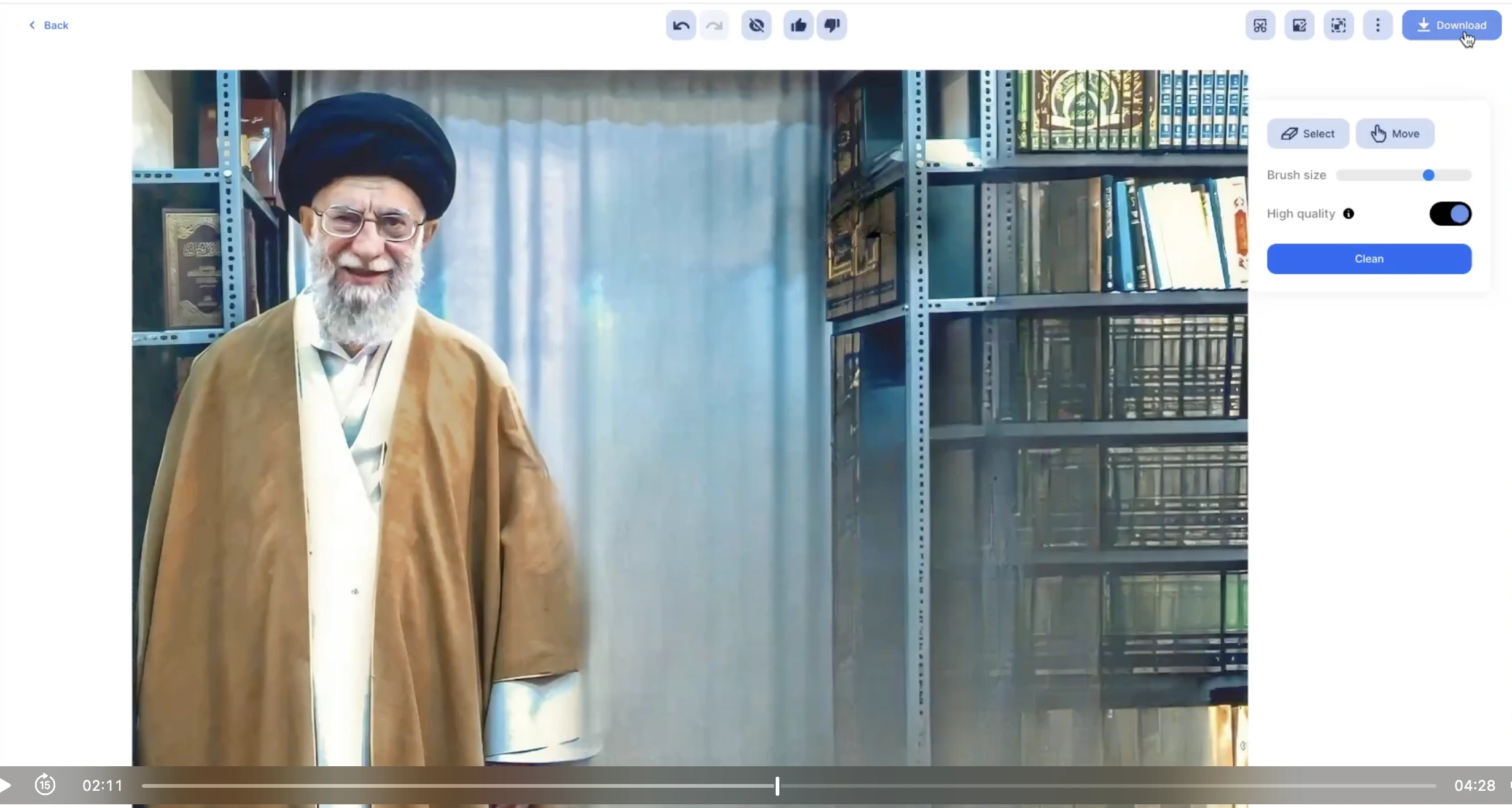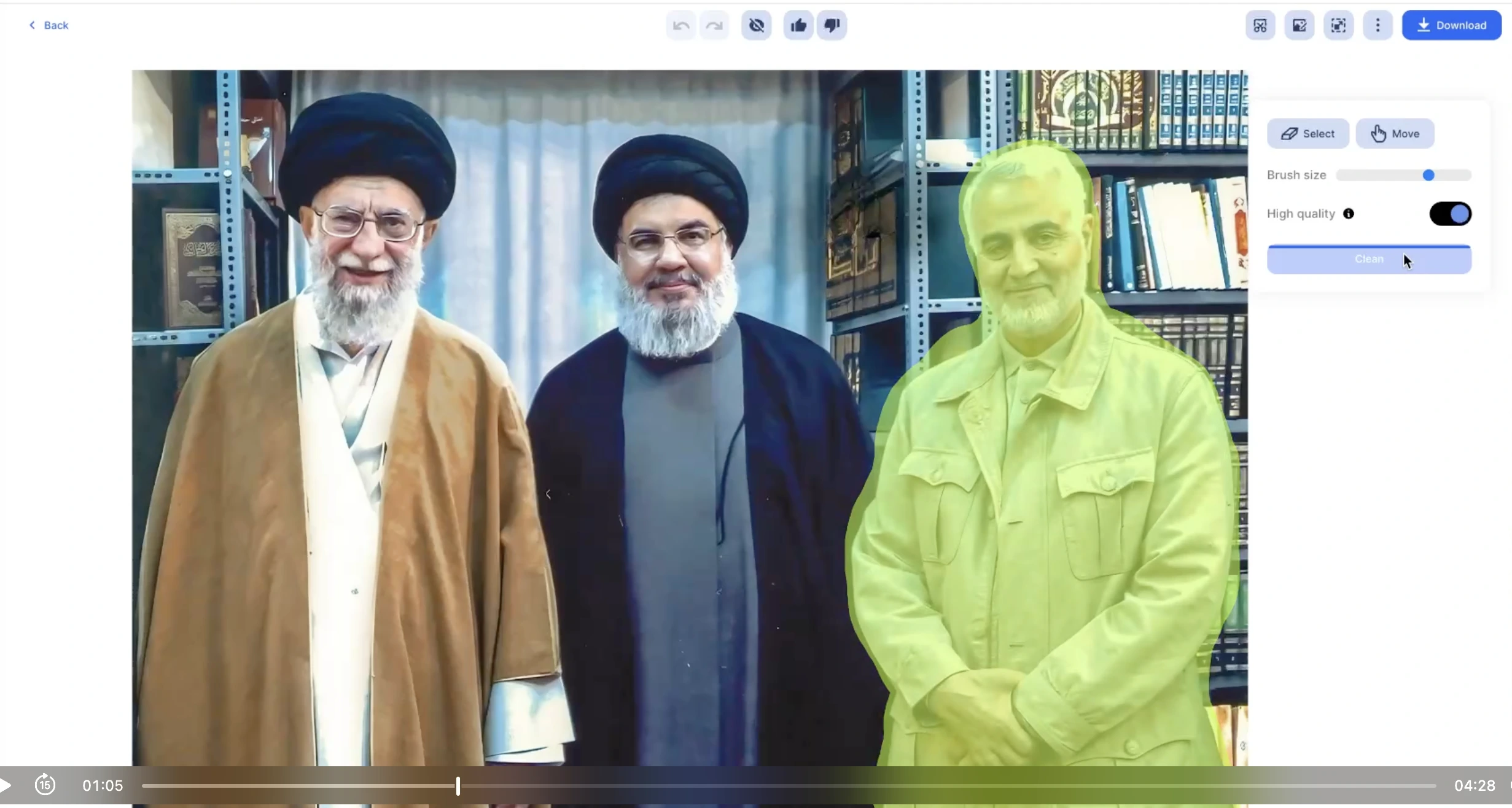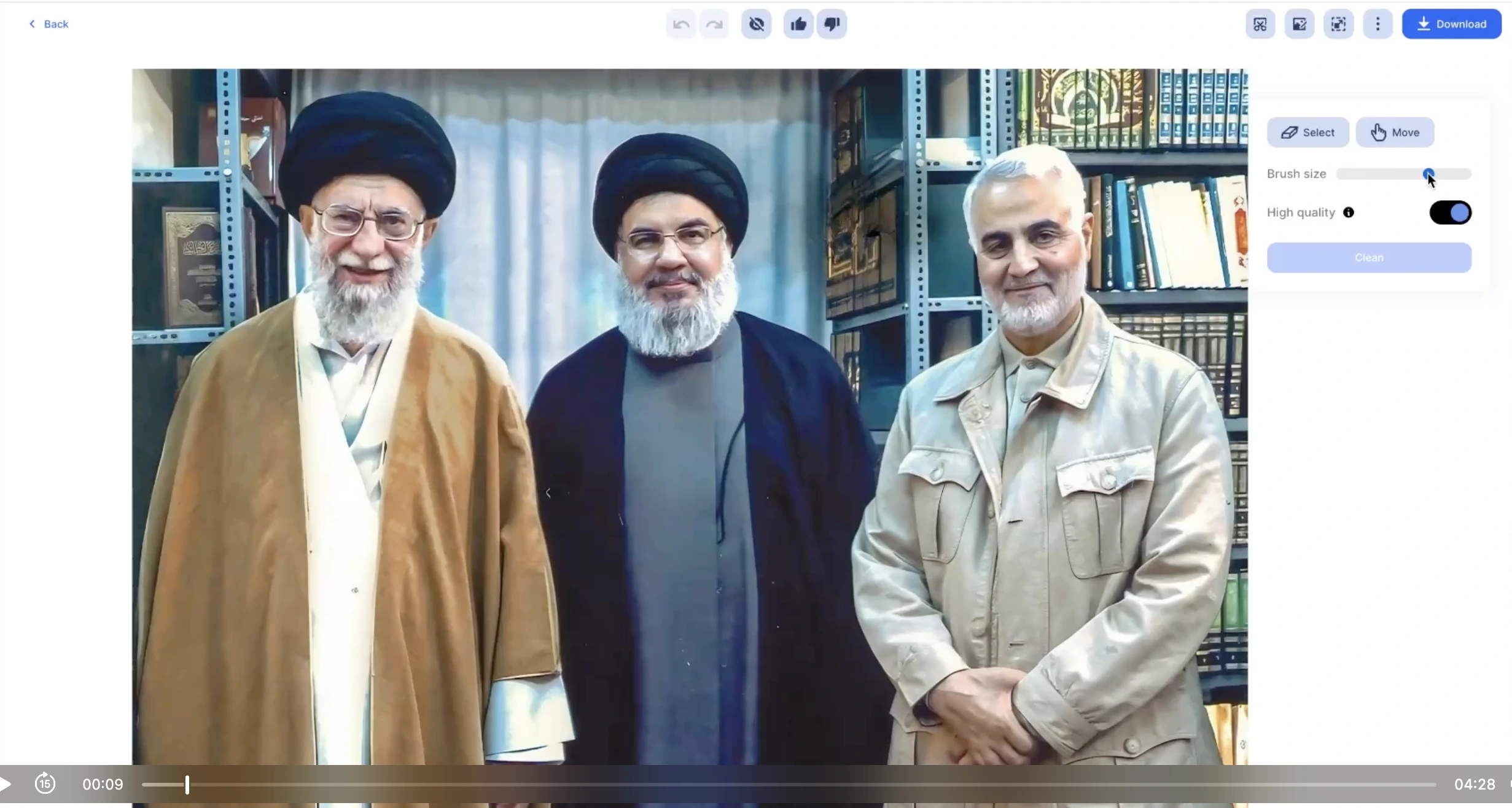 כאן אתם בוחרים את מברשת המחיקה שאיתה אתם עוברים עם העכבר על האיזור שתרצו למחוק. כסיימתם לסמן הכל, לחצו על הכפתור הכחול עליו רשום clean ותנו לקסם לעשות את שלו. אני משתמש באיכות גבוהה (למנויי פרימיום) אך אתם יכולים להעלות את איכות התמונה אח״כ עם אתר אחר חינמי.