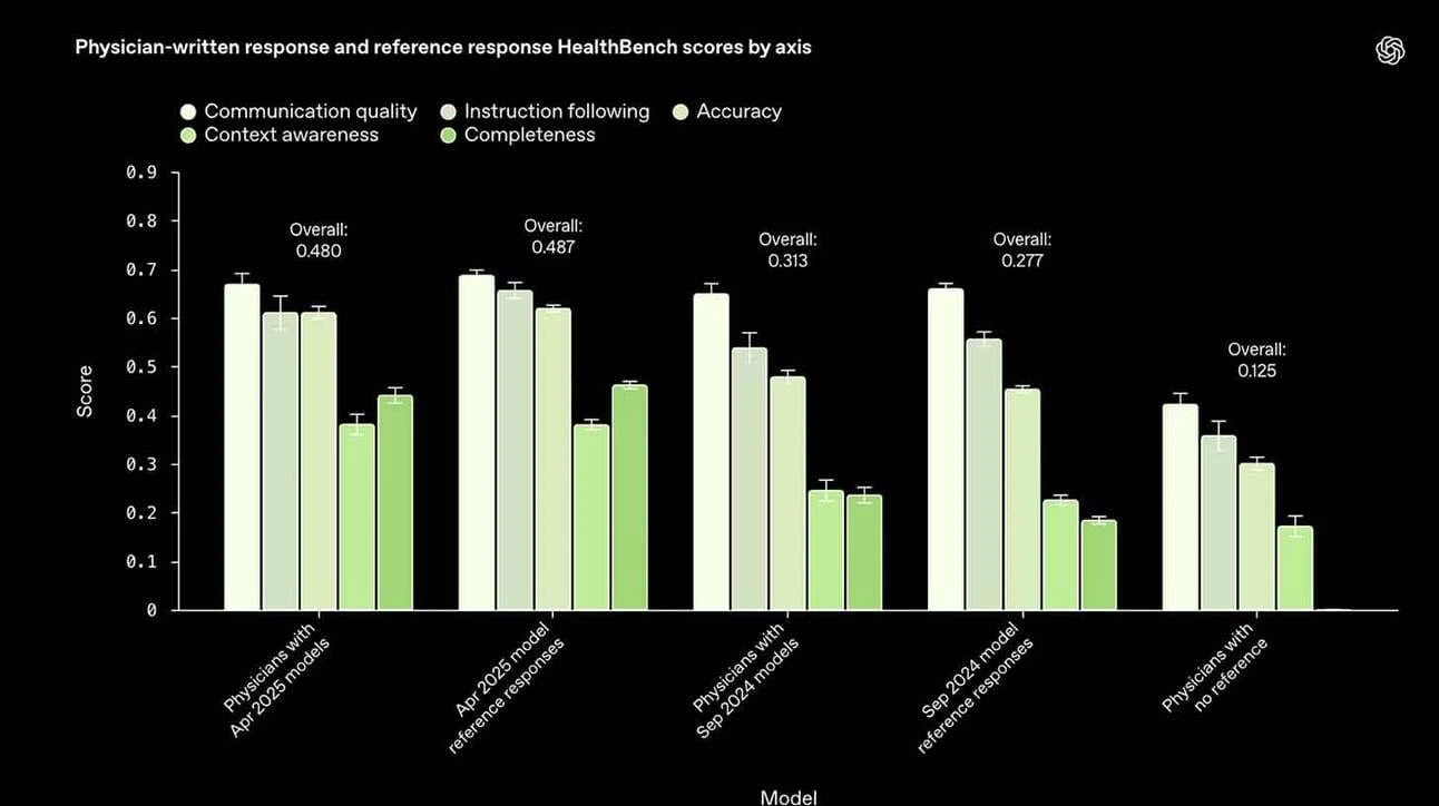 HealthBench היא מסגרת הערכה חדשנית שנבנתה עם שיתוף פעולה חסר תקדים: 262 רופאים מ־60 מדינות, שמכסים 26 תחומי רפואה ו־49 שפות. יחד הם יצרו 5,000 שיחות רפואיות מציאותיות, שבהן נבדקות התשובות של מודלים ב־AI מול קריטריונים מפורטים שנכתבו על ידי רופאים – ממש כמו מבחן רופא ברמה בינלאומית.