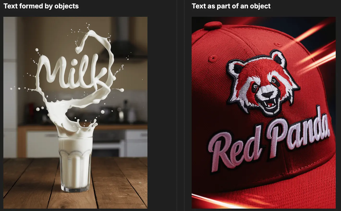 חוזקה נוספת של ideogram היא היכולת להטמיע טקסט בתמונה, ללא שגיאות ובאופן אינטגרלי לחלוטין לעיצוב. הם אף הגדילו לעשות והכינו מדריך שלם כיצד להטמיע טקסטים בעיצוב שונים. אפשר לקרוא הכל בלינק הזה.